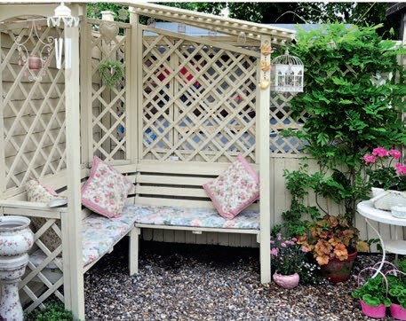 Nieodłącznym elementem altany są wspinające się po jej ażurowych ściankach pnącza – dzięki nim zyskujemy intymność, a przy tym tworzą klimat, zacieniając jej wnętrze. Niezwykle dekoracyjnie wyglądają choćby powojniki. Mają bardzo efektowne kwiaty – najbardziej okazałe należą do odmian wielokwiatowych. W zależności od gatunku i odmiany rozwijają się od maja do października. Do wczesno kwitnących należą choćby 'Anna German' czy 'Hania'. Późno kwitnące to m.in. 'Biały Anioł', 'Rasputin' czy 'Mazury'.