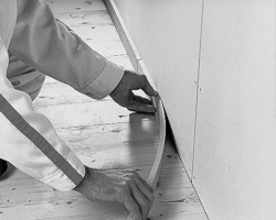 W celu uniknięcia powstawania mostków akustycznych na styku podłoża ze ścianami należy położyć dostępną w handlu taśmę do izolacji krawędzi (samoprzylepną taśmę PU, taśmę PS lub w przypadku szczególnych wymogów p.poż. paski wełny mineralnej o gr. 10 mm).