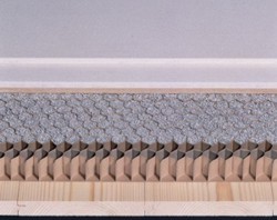 Tekturowa mata o strukturze plastra miodu i o wys. 30 mm lub 60 mm z wypełnieniem kruszywem mineralnym dociąża drewniane stropy belkowe w sposób nie zagrażający ich wytrzymałości. Jednocześnie, zastosowanie jej wraz z systemowymi elementami podłogowymi izolowanymi akustycznie, poprawia efekt tłumienia dźwięków mechanicznych na drewnianych stropach belkowych nawet o 34 dB.