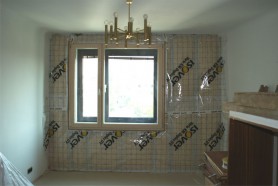 Fot. 2. Po ułożeniu ocieplenia od wewnątrz zamontować powinno się też nowe, drugie okno o lepszej izolacyjności cieplnej. Przestrzeń pomiędzy oknami należy wykończyć tak samo, jak ściankę kryjącą