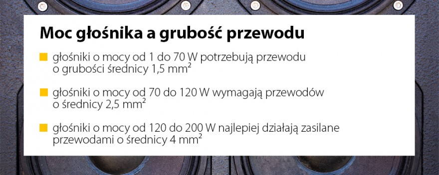 Nie zawsze standardowe przewody do głośników pozwalają uzyskać satysfakcjonujący dźwięk. Nie oznacza to jednak, że jesteśmy na nie skazani. Dobrej jakości kolumny o większej mocy nie mają na stałe zamocowanych przewodów, a odłączenie ich jest bardzo proste. Także montaż końcówek nie sprawi problemu i nie będzie wymagał specjalistycznych narzędzi. Dlatego warto spróbować dokonać zmiany dla uzyskania dobrego efektu i nowych doznań.