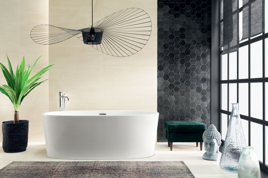Musi być jednak coś, co różni łazienkę japońską od minimalistycznej, skoro trend ten jest uznawany za osobną konwencję estetyczną. Kiedy bliżej przyjrzymy się aranżacjom łazienek w stylu japońskim, bez trudu zauważymy że dominują w niej kolory kojące, ciepłe i takie które występują w naturze: łagodne beże i brązy przypominający delikatny piasek i jasne skały, kamienne szarości, złamane odcienie bieli i rozbielone delikatne żółcienie, które często łączy się z czernią lub czerwienią. Minimalizm natomiast częściej sięga po kolory chłodne: czyste biele i zimne szarości. W łazience japońskiej musi być dużo wolnej przestrzeni, aby nic rozpraszało uwagi i nie przeszkadzało w osiągnięciu skupienia i relaksu, w stylistyce tej trudno więc urządzić pomieszczenie małe. Większa powierzchnia jest niezbędna choćby ze względu na wannęktóra w łazience japońskiej jest sprzętem niezbędnym. Absolutnie nie może być zbyt mała i wciśnięta w kąt – wanna w urządzonej w stylu japońskim łazience to najważniejszy sprzęt, Japończycy mają w swoich łazienkach wanny w formie basenów wpuszczanych bezpośrednio w podłogę. W aranżacji łazienki w takiej konwencji najlepiej więc, jeśli jest to model wolnostojący, a wokół wanny pozostawione jest dużo wolnej przestrzeni. Kąpiel w wannie jest tutaj rytuałem, wymagającym oddechu również w przestrzeni. Wanna może być obudowana podestem, na którym w oczekiwaniu na kąpiel można przysiąść lub nawet się położyć. Obowiązkowa wanna jest więc kolejnym wyróżnikiem stylu japońskiego w łazience – w minimalistycznej wystarczy prysznic. Jest on jednak również niezbędny w łazience japońskiej, bo czas spędzony w wannie jest traktowany głównie jako oczyszczenie duchowe, przedtem należy oczyścić ciało pod względem fizycznym – do tego służy prysznic. Jeśli w łazience musi znaleźć się sedes, powinien on być oddzielony od strefy kąpielowej ścianką – drewnianą lub bambusową. W łazience minimalistycznej taki podział na strefy nie jest niezbędny – całość ma stanowić spójne, komfortowe wnętrze. Kolejnym elementem różnicującym może być oświetlenie.