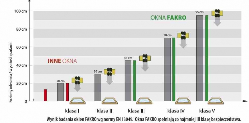 Poczucie bezpieczeństwa, to jedna z głównych potrzeb człowieka. Chcemy czuć się bezpiecznie na ulicy, podczas podróży, czy na zorganizowanych imprezach. Lecz najbardziej, dbamy o bezpieczeństwo we własnych domach. Nikt z nas świadomie nie kupi produktu, który może narazić nas na niebezpieczeństwo. Okna dachowe to specyficzne produkty, montowane w konstrukcji dachu, nad głowami użytkowników. A przecież na dachach czasem pracują ludzie. Dlatego okna muszą zapewniać bezpieczeństwo użytkowania oraz zabezpieczać przed łatwym wejściem do budynku.