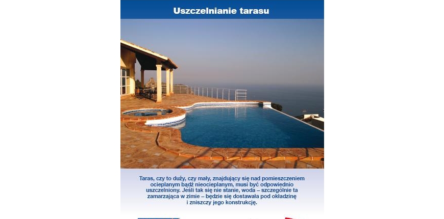 Taras duży, czy mały, znajdujący się nad pomieszczeniem ocieplanym bądź nieocieplanym, musi być odpowiednio uszczelniony. Jeśli tak się nie stanie, woda – szczególnie ta zamarzająca w zimie, będzie dostawała się pod okładzinę i zniszczy jego konstrukcję.